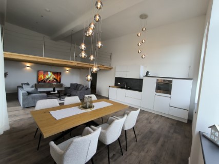 Diese großzügige Galerie-Wohnung bietet exklusiven Wohnraum, der durch hohe Decken und große Fensterfronten mit natürlichem Licht durchflutet wird.